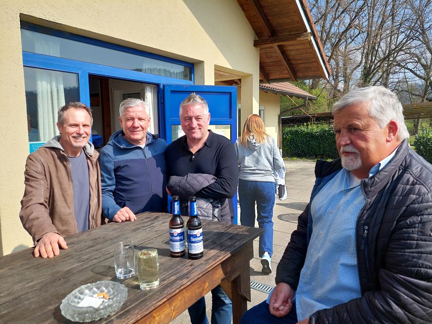 Auch die zahlreich erschienenen "Fußball-Experten", hier eine Abordnung, waren mit dem Ausgang des Spieles einverstanden. Bild: Fritz Zimmermann